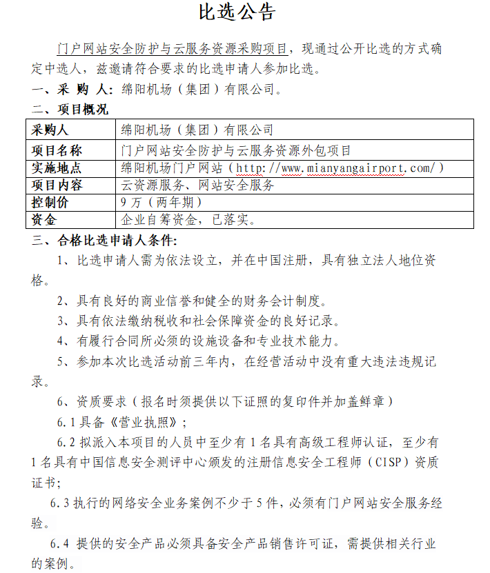 門戶網(wǎng)站安全防護(hù)與云服務(wù)資源項(xiàng)目采購(第二次)